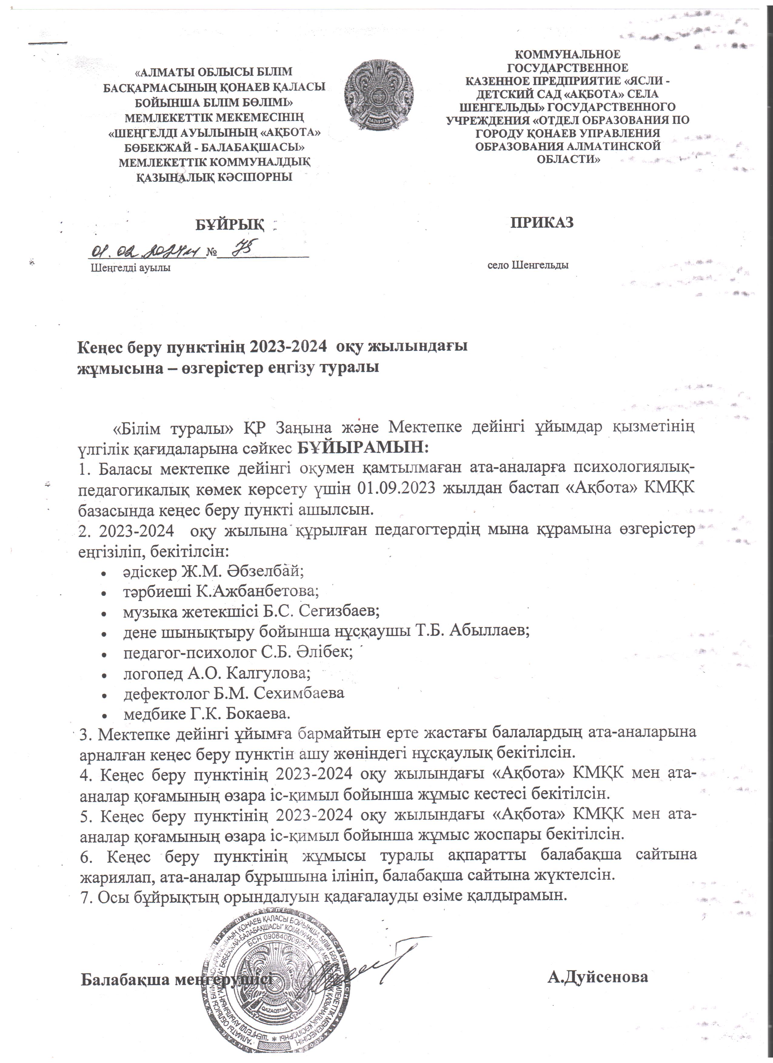 Кеңестік пункт бұйрық